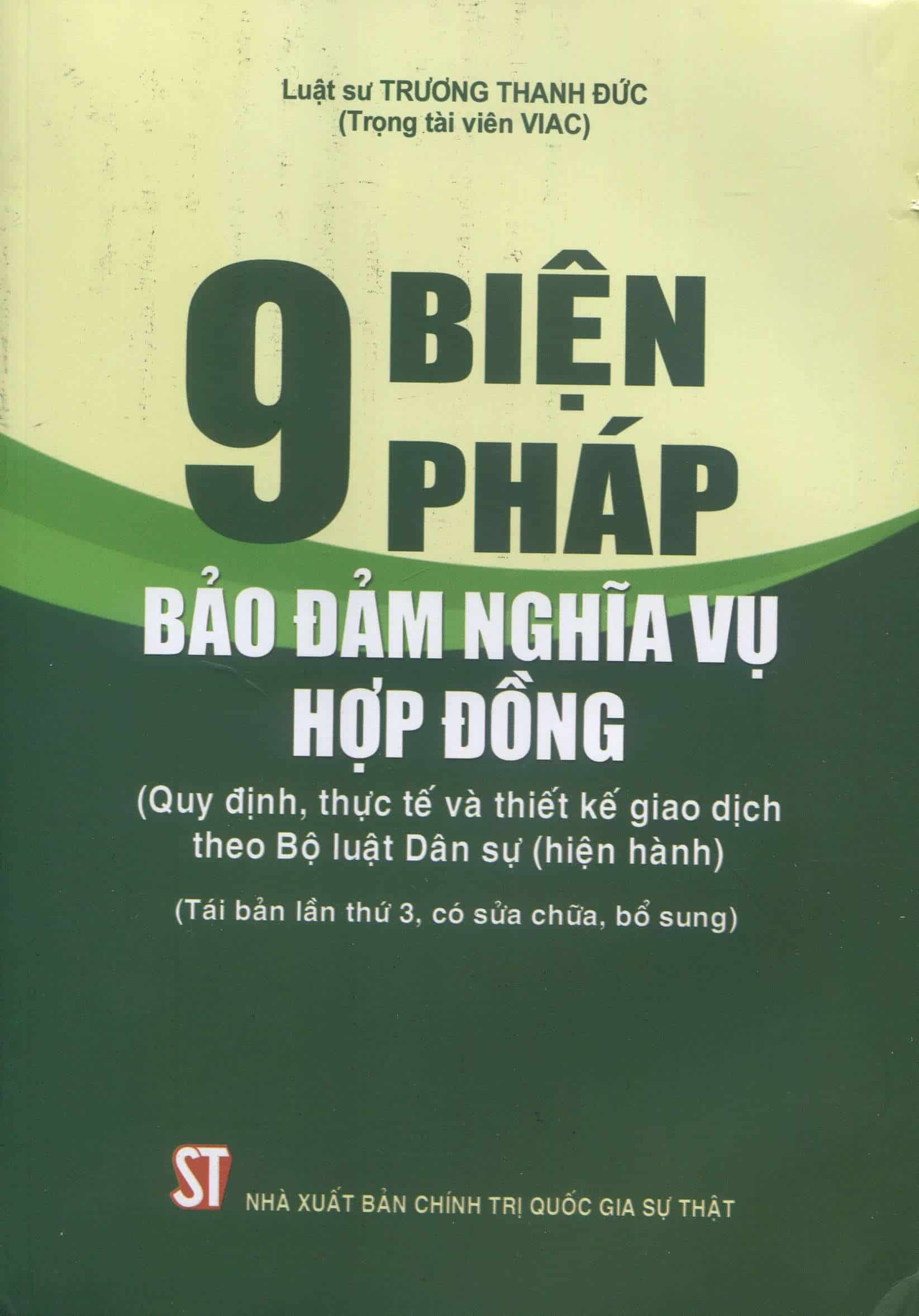 9 biện pháp bảo đảm nghĩa vụ hợp đồng (Quy định, thực tế và thiết kế giao dịch theo Bộ luật dân sự (hiện hành))(tái bản lần thứ 3, có sửa đổi, bổ sung)