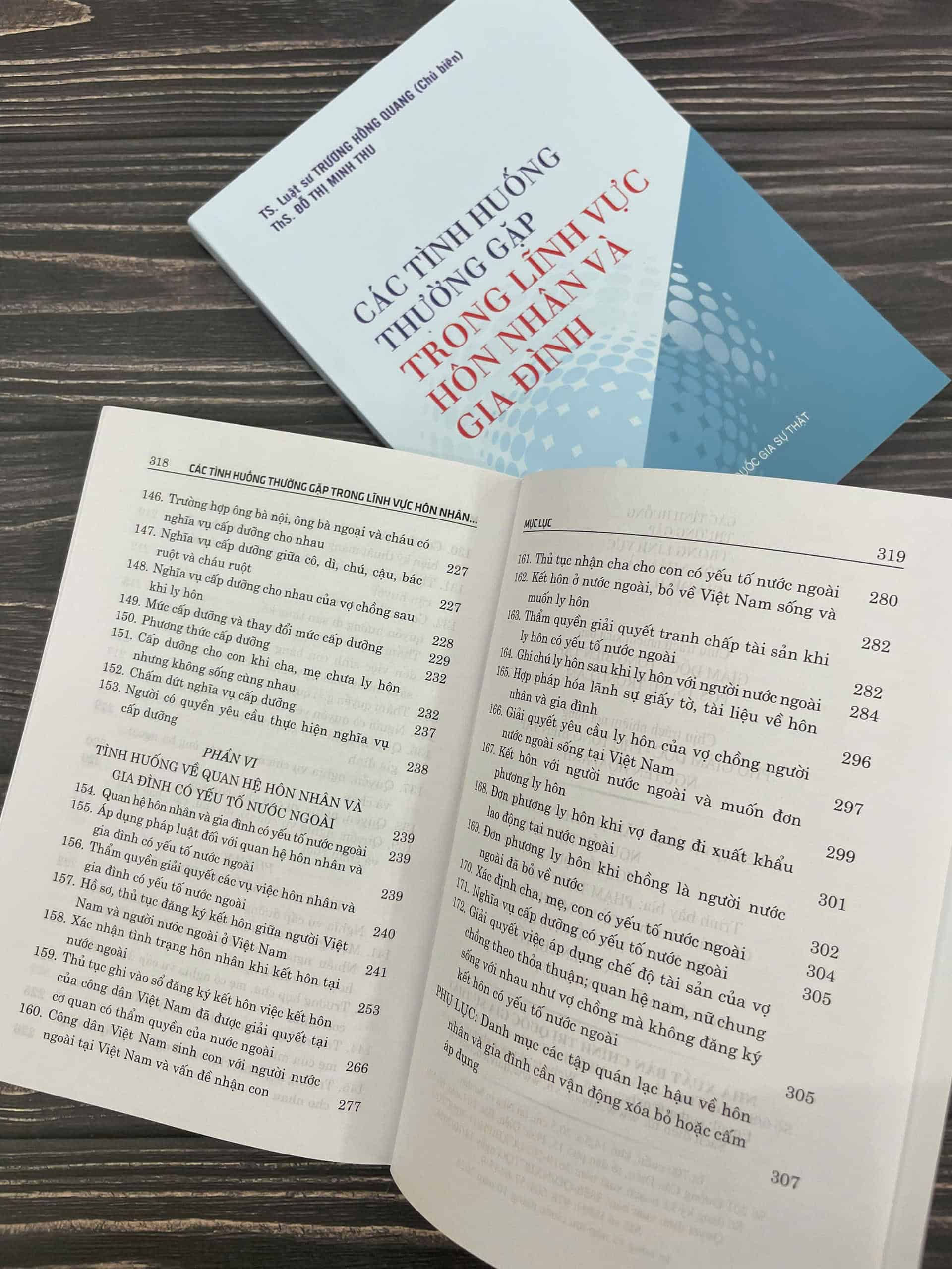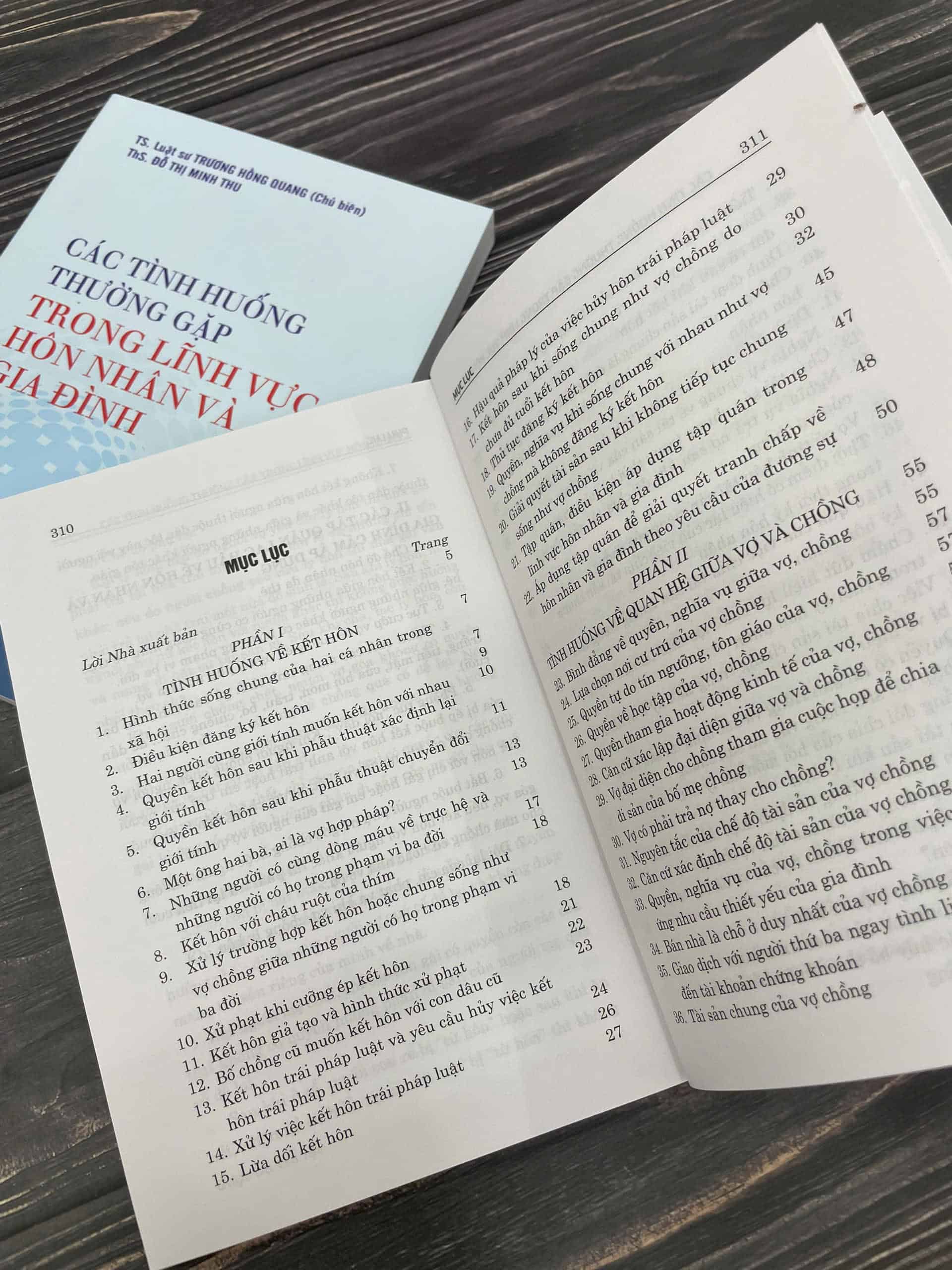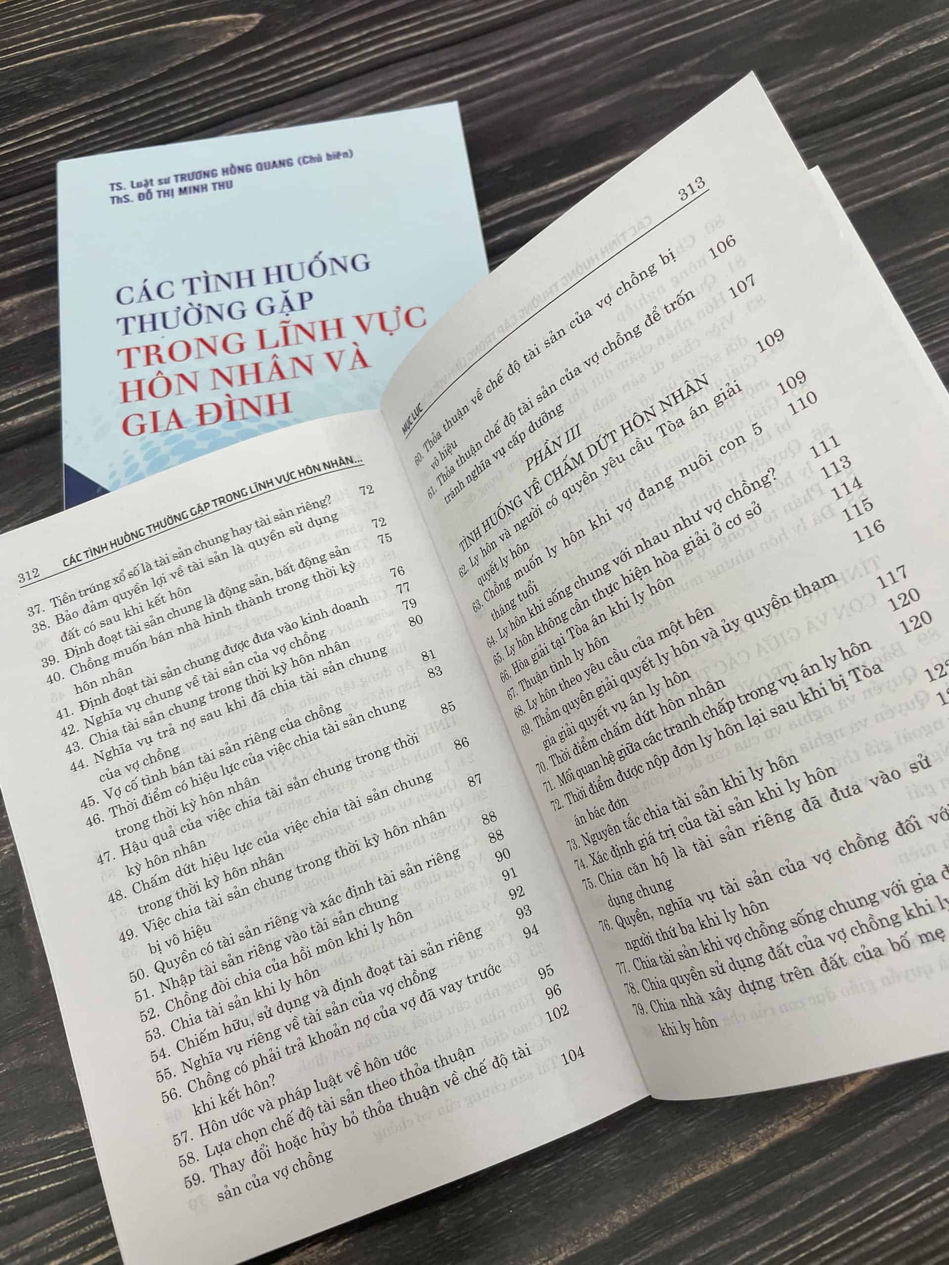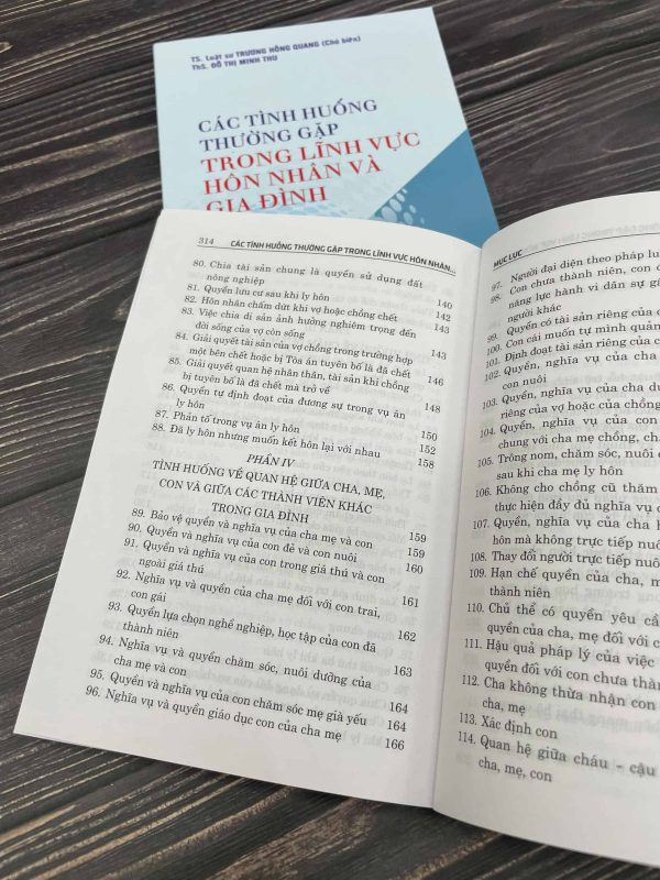 Cuốn sách gồm 6 phần, với 172 câu hỏi, trả lời về các tình huống thường xảy ra trong lĩnh vực hôn nhân và gia đình: