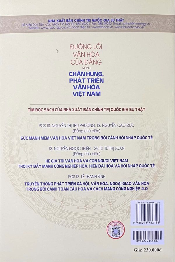 Cuốn sách được chia làm ba phần gồm các văn bản chỉ đạo cra Đảng, Nhà nước về chủ trương, đường lối văn hóa trong bối cảnh mới; các bài viết lý luận về xây dựng hệ giá trị văn hóa Việt Nam trong giai đoạn mới và tổ chức thực hiện ở một số cơ quan, bộ, ngành, địa phương.