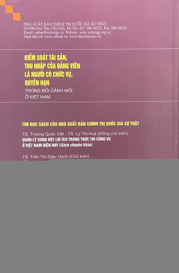 Kiểm soát tài sản, thu nhập của Đảng viên là người có chức vụ, quyền hạn trong bối cảnh mới ở Việt Nam (Sách chuyên khảo)