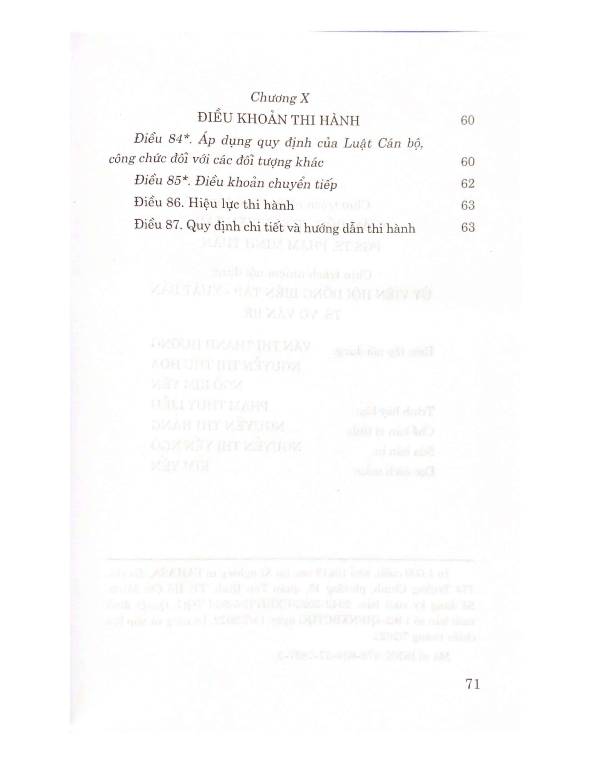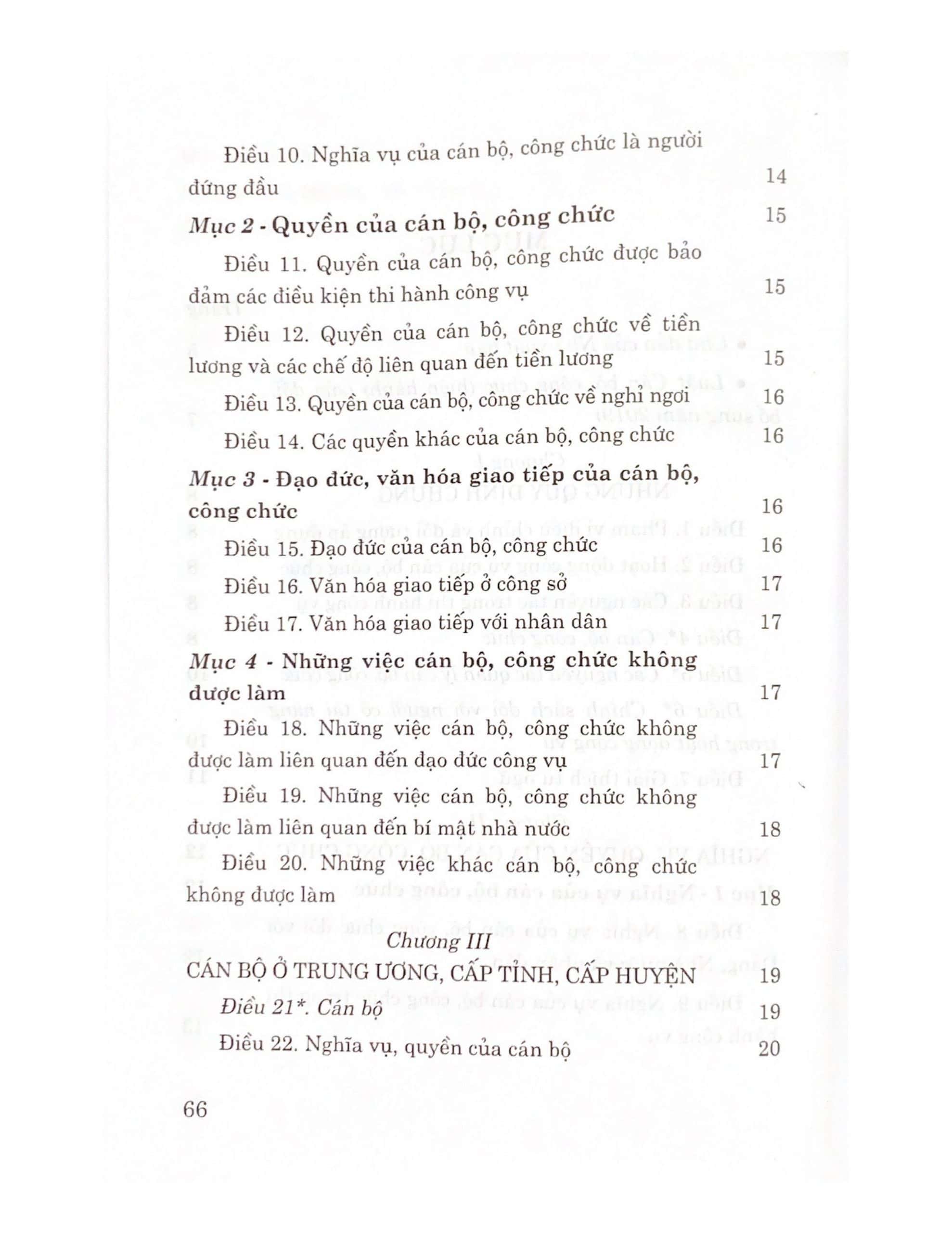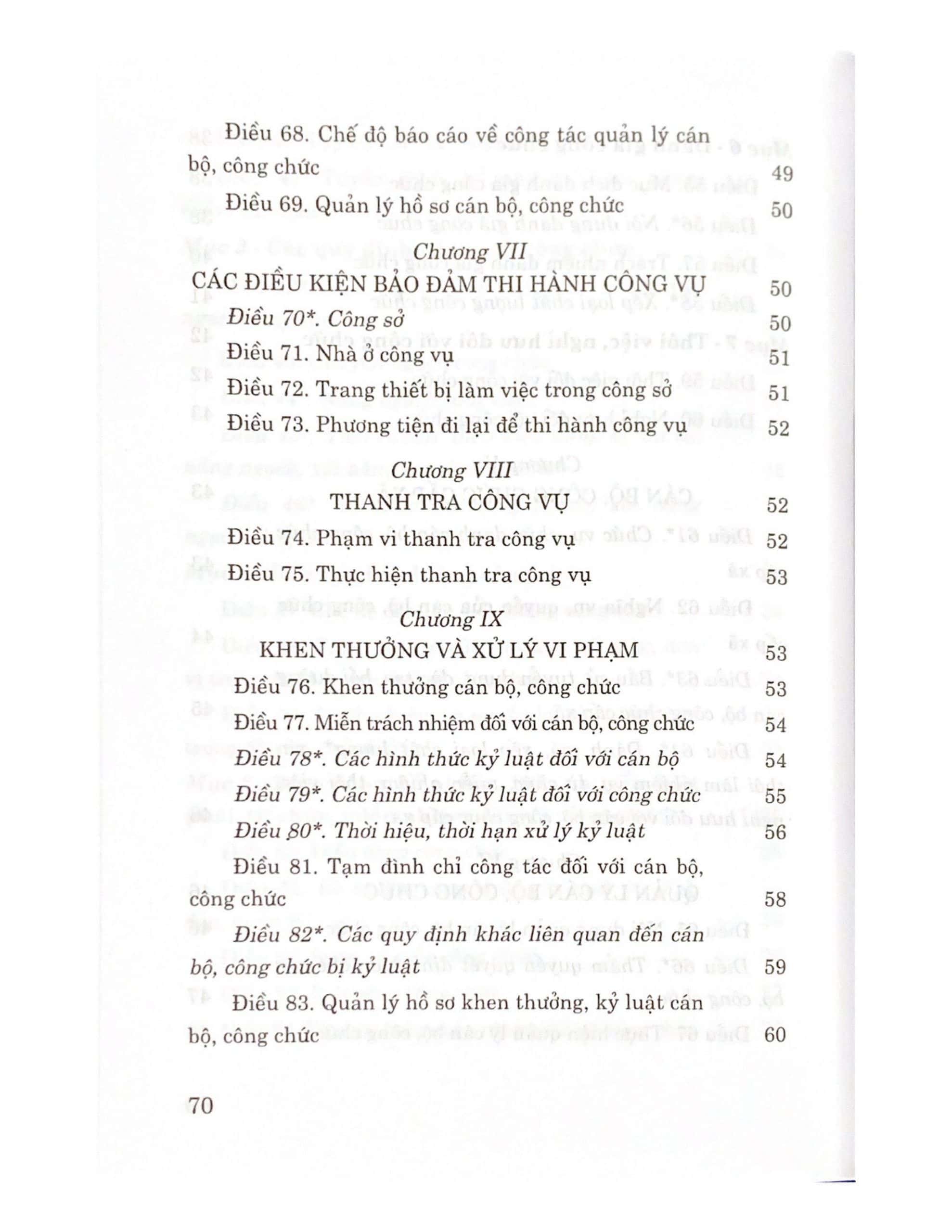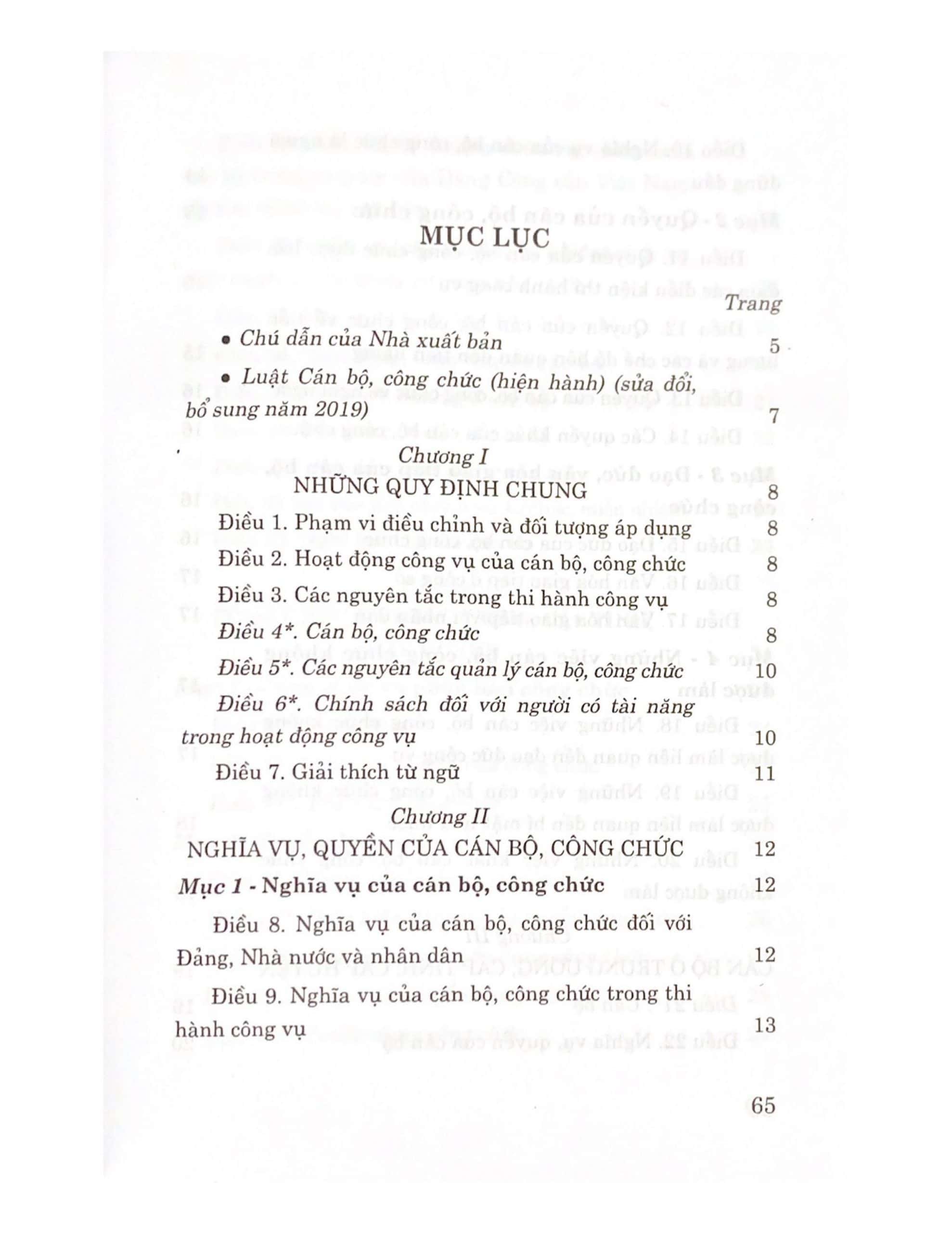 Nội dung cuốn sách Luật Cán bộ, công chức (Hiện hành) (Sửa đổi, bổ sung năm 2019) là văn bản được hợp nhất giữa Luật Cán bộ, công chức năm 2008 và Luật sửa đổi, bổ sung một số điều của Luật Cán bộ, công chức và Luật Viên chức năm 2019.