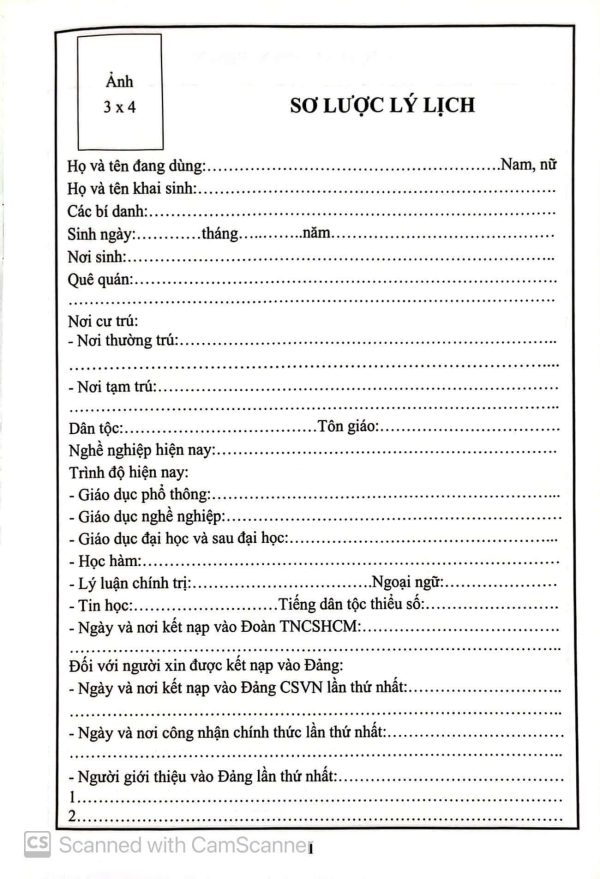 Quyển lý lịch của người xin vào đảng dành cho người chuẩn bị kết nạp Đảng