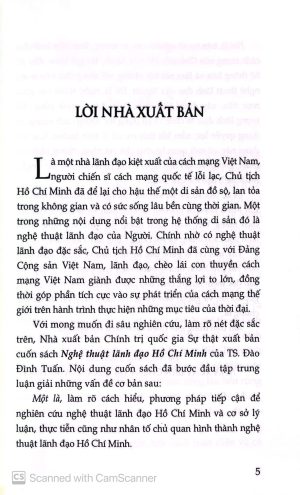 Với mong muốn đi sâu nghiên cứu, làm rõ nét đặc sắc trên, Nhà xuất bản Chính trị quốc gia Sự thật xuất bản cuốn sách Nghệ thuật lãnh đạo Hồ Chí Minh của TS. Đào Đình Tuấn. Nội dung cuốn sách đã bước đầu tập trung luận giải những vấn đề cơ bản sau: Một là, làm rõ cách hiểu, phương pháp tiếp cận để nghiên cứu nghệ thuật lãnh đạo Hồ Chí Minh và cơ sở lý luận, thực tiễn cũng như nhân tố chủ quan hình thành nghệ thuật lãnh đạo Hồ Chí Minh.