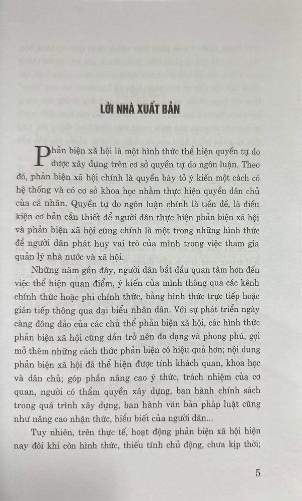 Những năm gần đây, người dân bắt đầu quan tâm hơn đến việc thể hiện quan điểm, ý kiến của mình thông qua các kênh chính thức hoặc phi chính thức, bằng hình thức trực tiếp hoặc gián tiếp thông qua đại biểu nhân dân. Với sự phát triển ngày càng đông đảo của các chủ thể phản biện xã hội, các hình thức phản biện xã hội cũng dần trở nên đa dạng và phong phú, gợi mở thêm những cách thức phản biện có hiệu quả hơn; nội dung phản biện xã hội đã thể hiện được tính khách quan, khoa hoc và dân chủ; góp phân nâng cao ý thức, trách nhiệm của cơ quan, người có thẩm quyền xây dựng, ban hành chính sách trong quá trình xây dựng, ban hành vǎn bản pháp luật cũng như nâng cao nhận thức, hiểu biết của người dân…