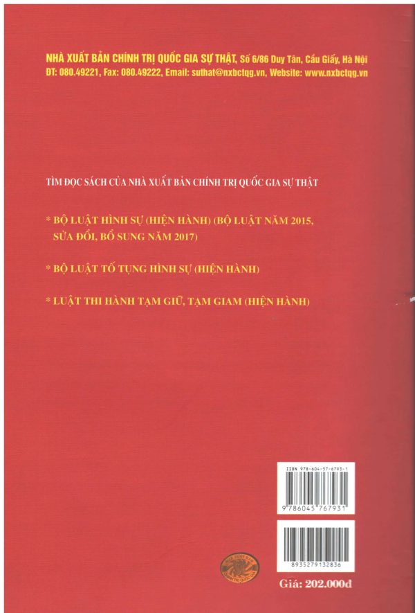 Hệ thống pháp luật của Nhà nước Cộng hòa xã hội chủ nghĩa Việt Nam do nhiều ngành luật hợp thành, trong đó, mỗi ngành luật điều chỉnh một lĩnh vực quan hệ xã hội nhất định. Luật hình sự là một ngành luật độc lập, là một bộ phận cấu thành quan trọng của hệ thống pháp luật Nhà nước ta, đồng thời là công cụ quan trọng để phòng ngừa, chống tội phạm, bảo vệ các lợi ích của Nhà nước, của công dân, bảo đảm pháp chế xã hội chủ nghĩa, quyền con người, quyền công dân, giữ vững ổn định an ninh quốc gia, trật tự, an toàn xã hội.Luật hình sự điều chỉnh các quan hệ xã hội phát sinh giữa một bên là Nhà nước với một bên là người phạm tội (hiện nay, còn cả pháp nhân thương mại phạm tội) khi có sự việc phạm tội. Chính vì vậy, thông qua việc quy định các hành vi phạm tội, hình phạt và biện pháp cưỡng chế về hình sự khác để áp dụng đối với các chủ thể đã phạm tội, Luật hình sự đã thực hiện các chức năng của mình, đồng thời, tạo cơ sở pháp lý quan trọng cho việc đấu tranh có hiệu quả cao để phòng ngừa và chống tội phạm.Trong chương trình đào tạo ở bậc đại học và bậc sau đại học (chuyên ngành Luật hình sự và tố tụng hình sự) tại các cơ sở đào tạo luật trên cả nước, Luật hình sự là học phần bắt buộc trong khối kiến thức ngành, chuyên ngành nhằm cung cấp cho người học những kiến thức cơ bản nhất về tội phạm, trách nhiệm hình sự và hình phạt, những dấu hiệu pháp lý đặc trưng đối với các tội phạm cụ thể, cũng như vấn đề định tội danh và quyết định hình phạt.Vừa qua, Luật hình sự đã được pháp điển hóa lần thứ ba với việc Quốc hội ban hành Bộ luật Hình sự năm 2015, sửa đổi, bổ sung năm 2017 (sau đây viết gọn là Bộ luật Hình sự năm 2015), có hiệu lực thi hành từ ngày 01/01/2018. Đây là Bộ luật có vị trí, vai trò đặc biệt quan trọng trong đời sống xã hội. Các quy định mới trong Bộ luật Hình sự năm 2015 đã đánh dấu một bước tiến rất quan trọng, tạo cơ sở pháp lý vững chắc cho cuộc đấu tranh phòng ngừa, chống tội phạm có hiệu quả cao; góp phần bảo vệ chủ quyền, an ninh quốc gia, bảo vệ chế độ, bảo vệ quyền con người, quyền công dân, lợi ích của nhà nước và tổ chức, bảo vệ và thúc đẩy kinh tế thị trường định hướng xã hội chủ nghĩa phát triển đúng hướng, tạo môi trường xã hội và môi trường sinh thái an toàn, lành mạnh cho mọi người dân, đồng thời đáp ứng yêu cầu của quá trình toàn cầu hóa và hội nhập quốc tế Do đó, nhiệm vụ phổ biến, giới thiệu những vấn đề cốt lõi, mang tính tổng quan về cơ sở khoa học của Luật hình sự Việt Nam tới đông đảo bạn đọc, đặc biệt đối tượng bạn đọc là giảng viên, sinh viên, học viên tại các cơ sở đào tạo Luật trên cả nước có ý nghĩa quan trọng góp phần nâng cao hiệu quả, ý thức tuân thủ, chấp hành nghiêm chỉnh pháp luật, qua đó, phát huy hiệu lực của luật hình sự.